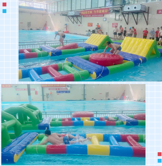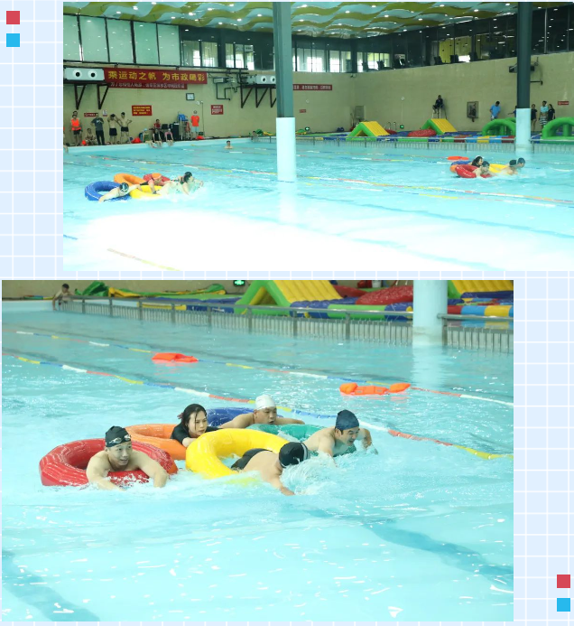比賽項目分為“風(fēng)雨同舟”、“爭分奪秒”、“奧運五環(huán)”、“勇往直前”四個(gè)環(huán)節,選手們充分利用水上道具,你追我趕、頑強拼搏,將比賽的氣氛推向高潮,歡聲笑語(yǔ)不斷、氣氛熱鬧非凡。